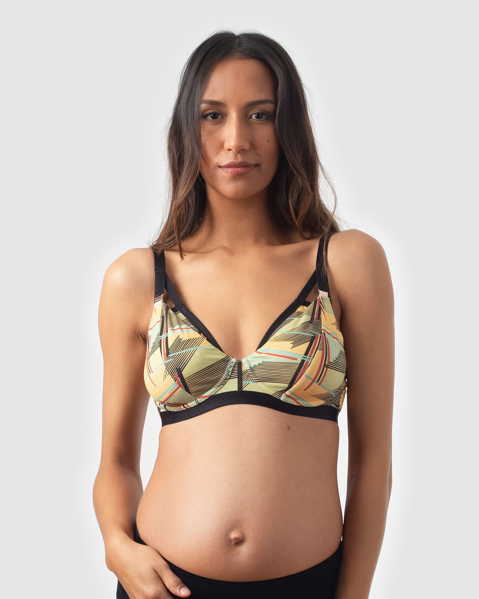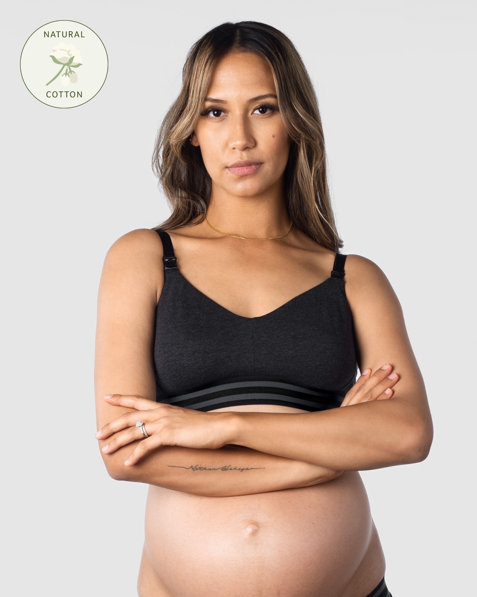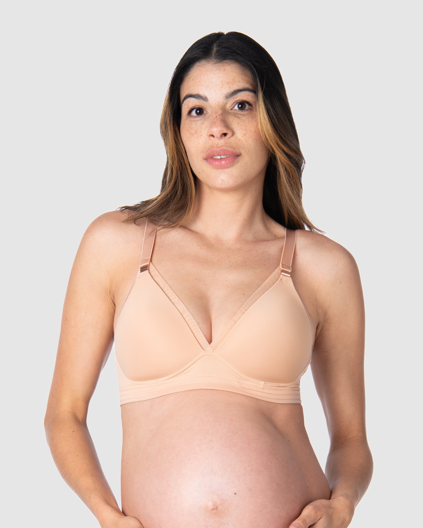 Pregnant woman wearing a hotmilk caress nursing bra by hotmilk