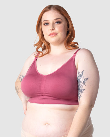 The Busty fit is made for fuller busts (E-G cups), while smaller sizes can go for the Regular fit. Expect light, wire-free support, full coverage removable cups, and side slings for skin-to-skin moments. Plus, adjustable straps, a 6-hook closure, and stretchy fabric for all-day comfort!