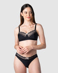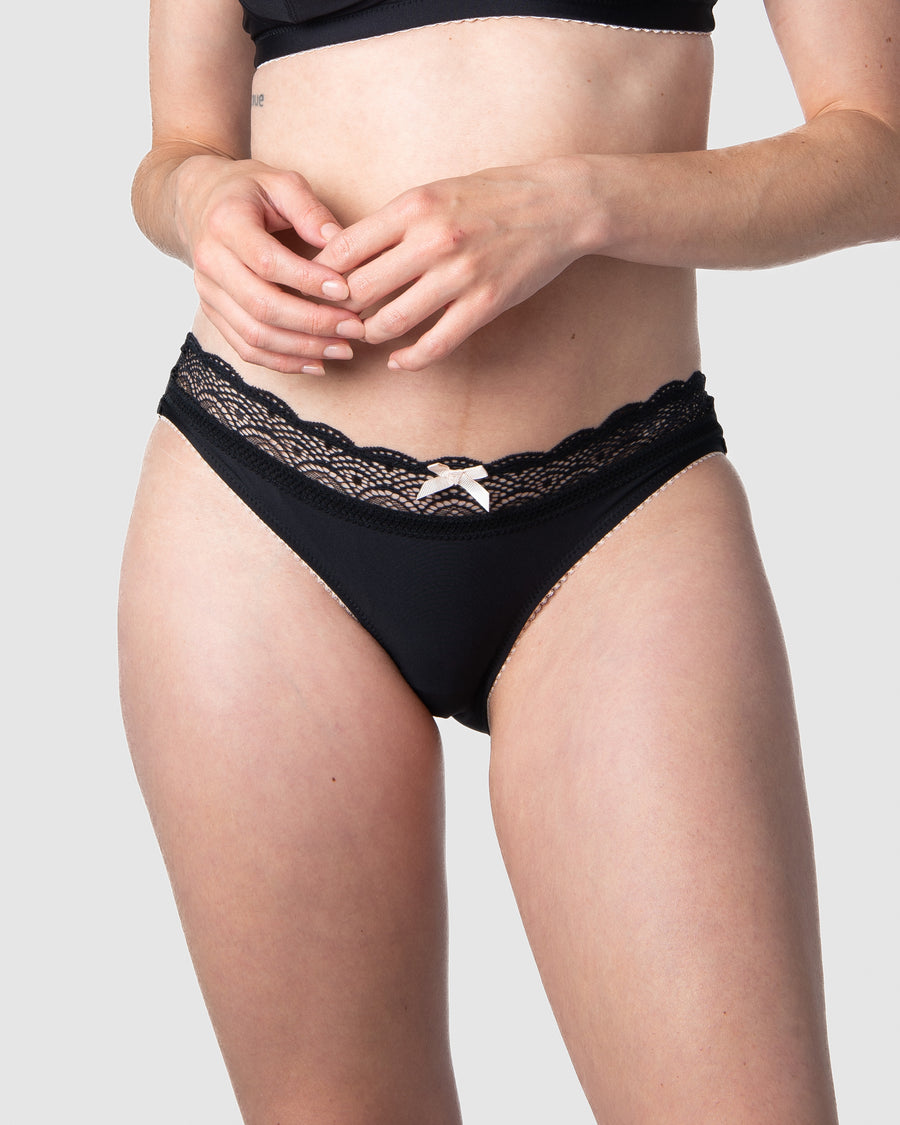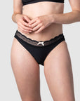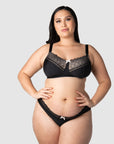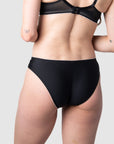 A stunning microfibre bikini in a commercial Jet Black colourway with a sophisticated fishnet trim on the top is a bold statement of femininity.